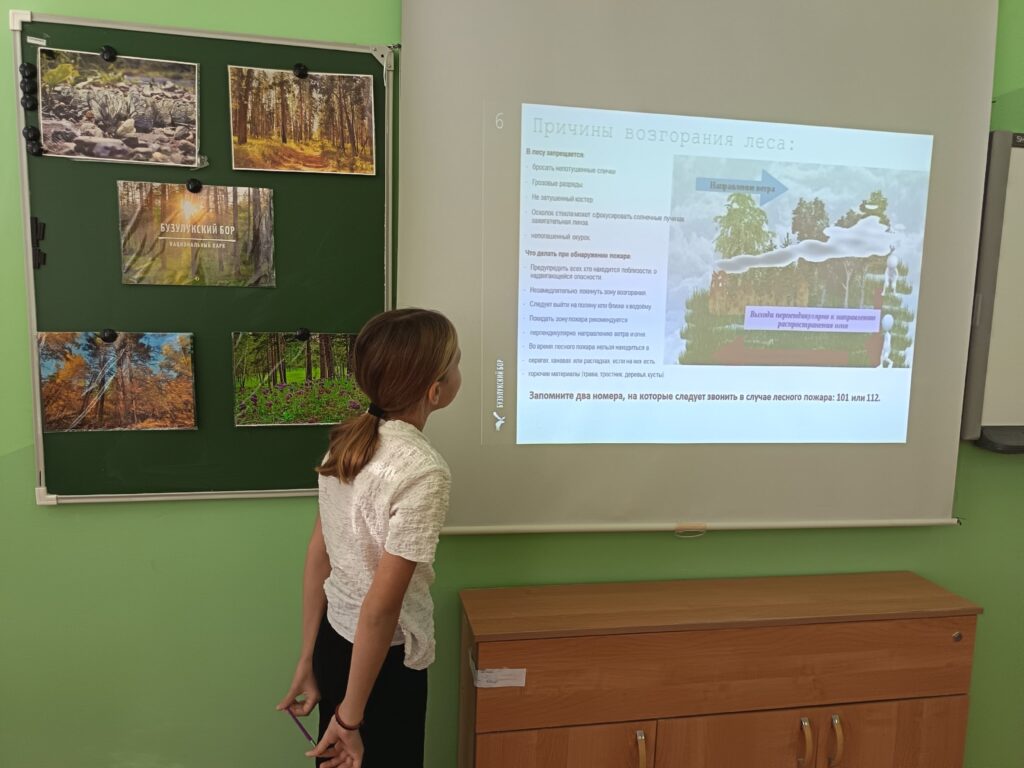 В рамках образовательного процесса, прошёл познавательный классный час в 5В классе. Тема мероприятия была посвящена вопросам противопожарной безопасности в лесном массиве НП «Бузулукского бора». Классный час начался с рассказа о важности бережного отношения к природе и её ресурсам. Ученики узнали о том, насколько легко возникает пожар в лесных массивах и каковы последствия даже незначительного возгорания. Были приведены яркие примеры реальных ситуаций, случившихся ранее, которые заставили ребят задуматься о последствиях небрежного обращения с огнём.