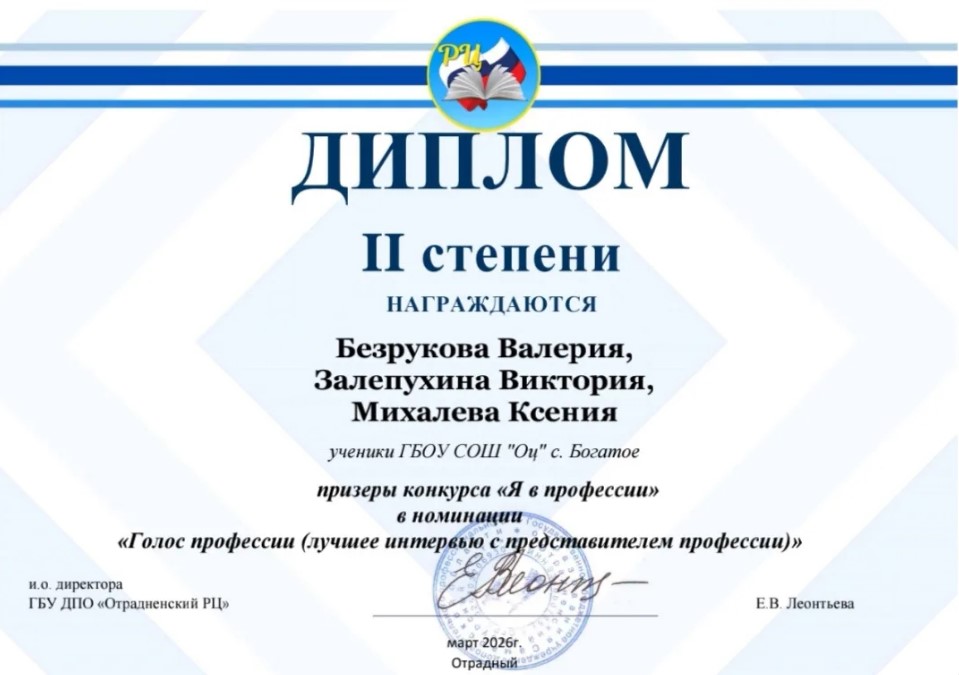 Безрукова Валерия, Михалева Ксения и Залепухина Виктория — призёры окружного конкурса «Я в профессии» для обучающихся предпрофильных классов!
